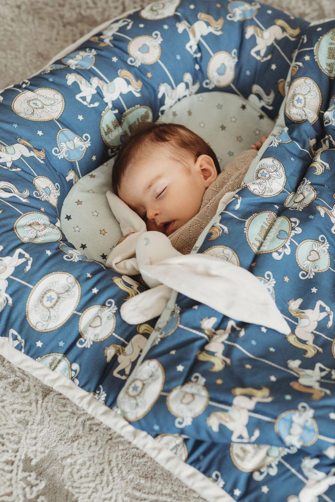 A fészek alakja és a szélei segítenek abban, hogy a babád ne ébredjen fel moro reflex esetén. Tudod, ezek azok az önkéntelen végtag mozgások, amikre a csecsemő felébredhet. A fészek pereme védelmet nyújt a bölcsőben vagy a kiságyban, megakadályozva, hogy a gyermeked beüsse a fejét vagy a lábát a kemény anyagba.