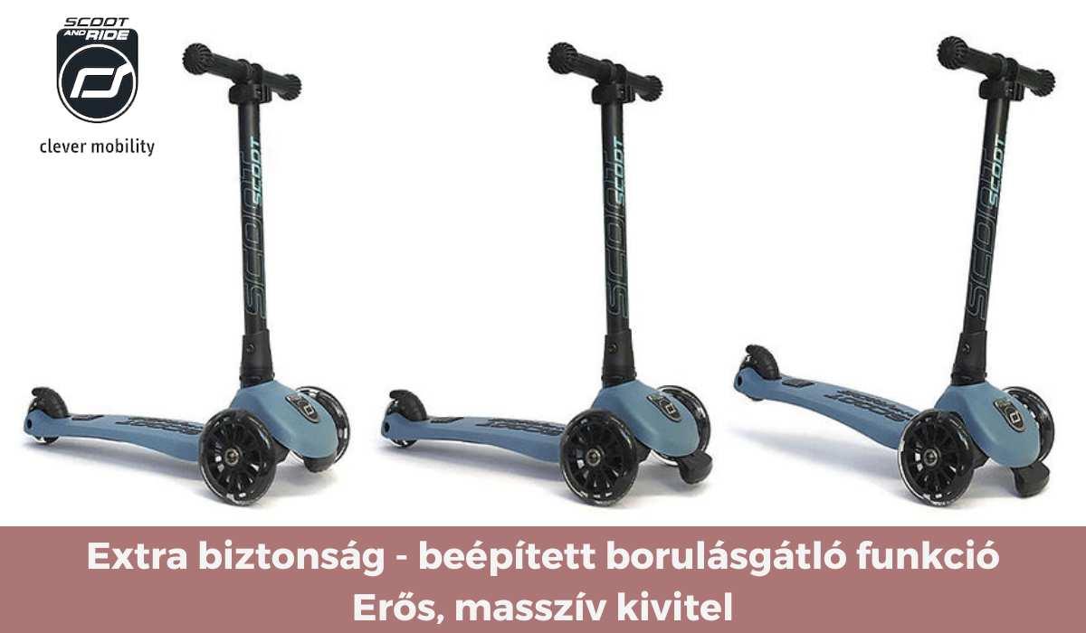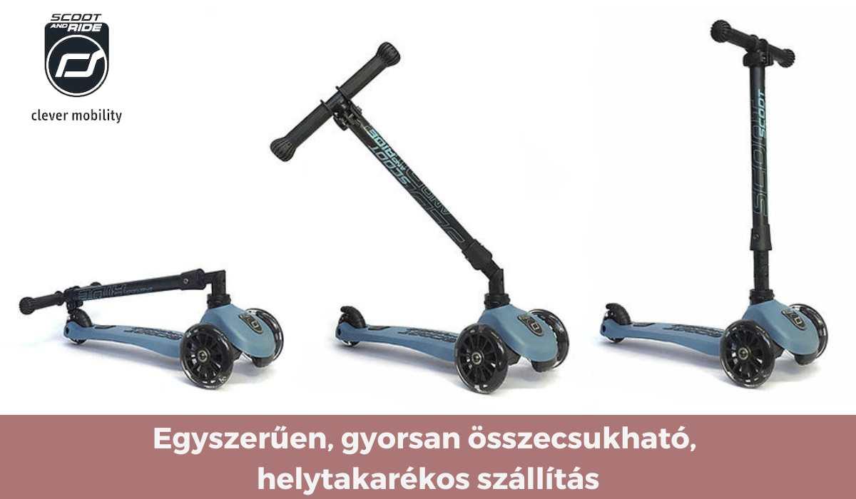 A Scoot and Ride Highwaykick 3 gyerek rollerek mind összecsukható vázzal rendelkeznek. Így a rollerek könnyen tárolhatóak otthon, vagy akár az iskolában, illetve tömegközlekedési eszközökön is könnyedén szállíthatóak.